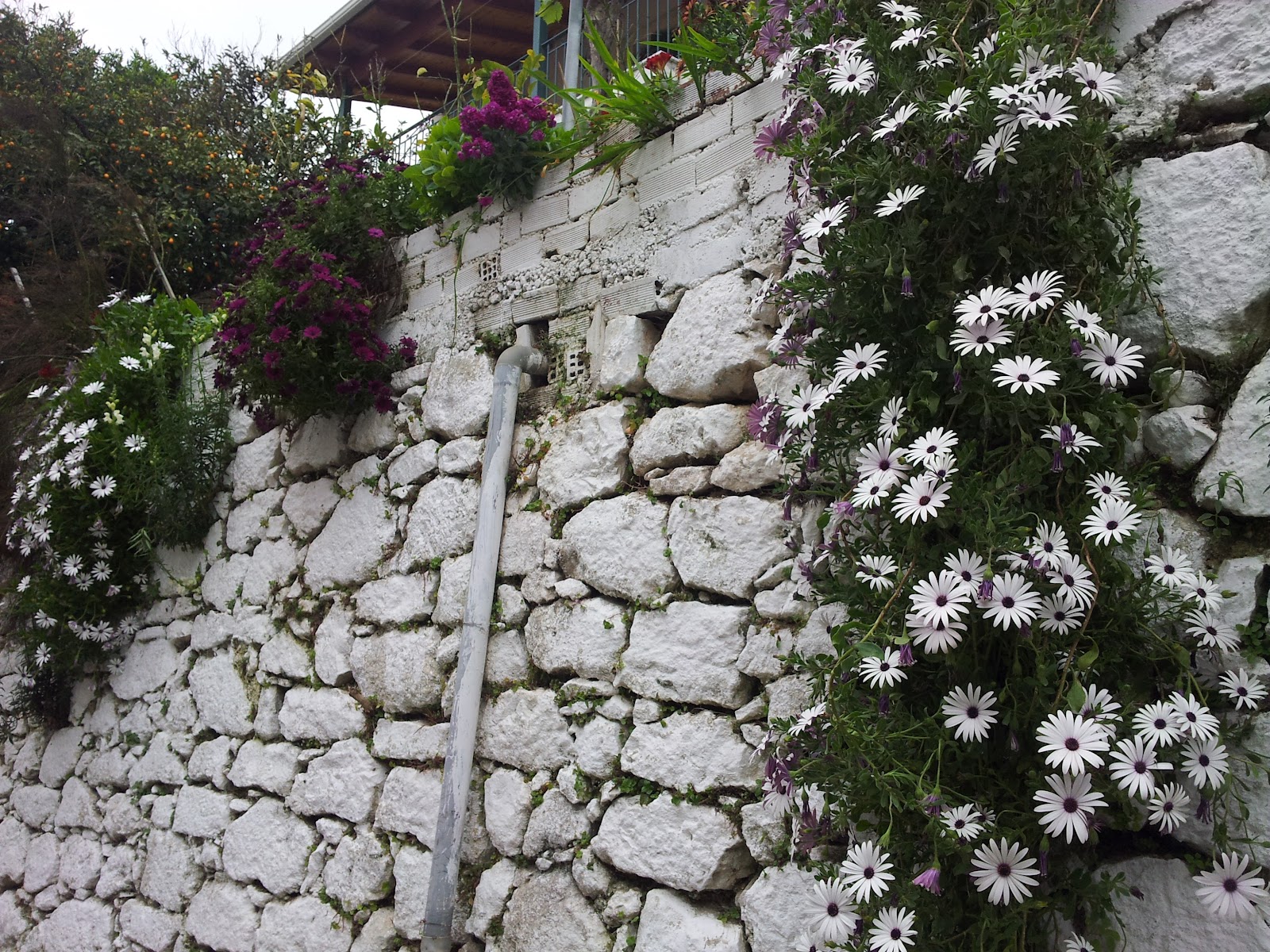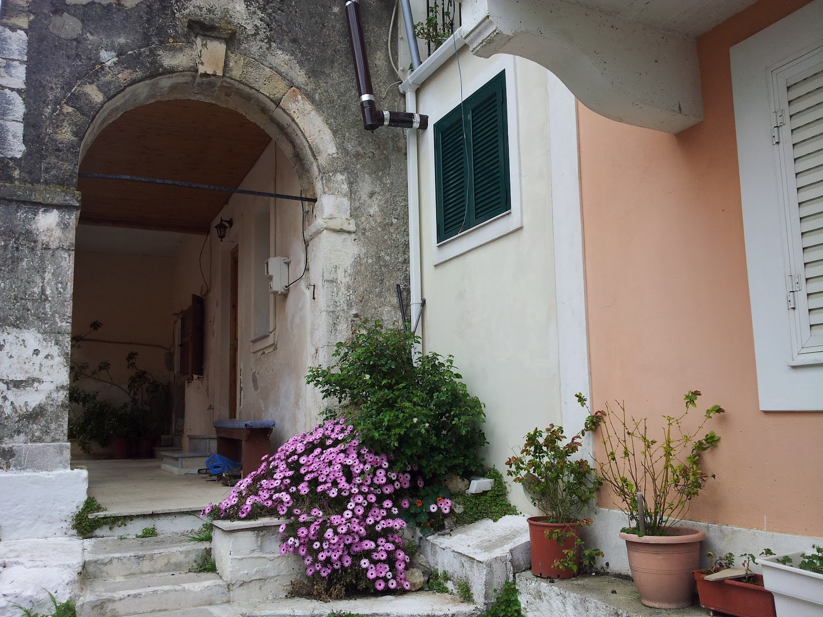 Corfu (Kerkyra in Greek) is a small island and can be covered quite fast. There are numerous shops, scattered across the island, which let you rent cars, bicycles and motor bikes. Bicycles seems to be a popular choice of transport among the tourists. Our drive was wonderful. We drove through tiny villages, with narrow streets. The architecture is not quite we thought it would be, but it settles well with the surroundings. The houses quite similar to the ones in Kerala. Small house painted in different pastel shades. What I love about these houses are their gardens. Almost all of them have lovely gardens with lavender growing on the walls, and citrus trees bursting with ripe fruits. Then there are beautiful wild flowers sprouting up from ever possible places. They grow on rocks, walls…different shades of violet, pink, yellow and red. Our receptionist told us that all these flowers were brought to the Island by the British. When this island was colonized 1000s of varieties of plants were brought by them.